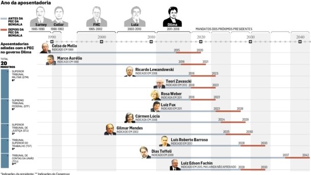 Nova idade-limite para aposentadoria compulsória, de 75 anos, tirou da presidente a possibilidade de indicar mais 5 ministros para a Corte